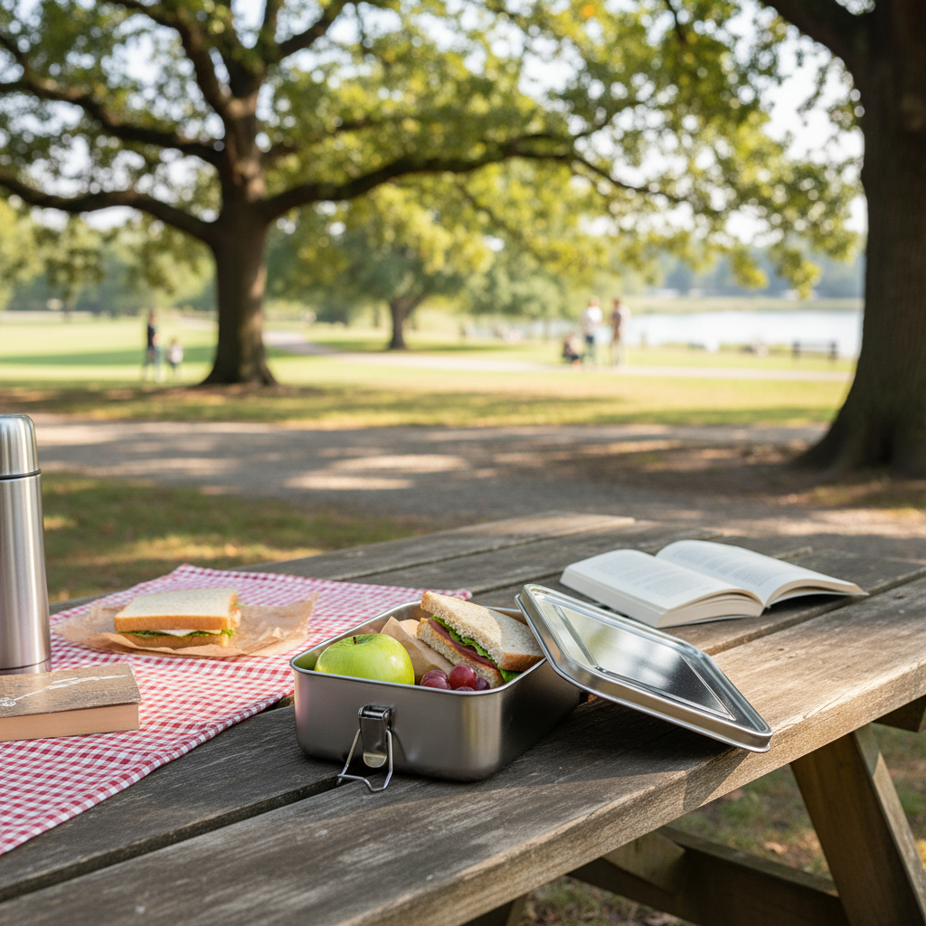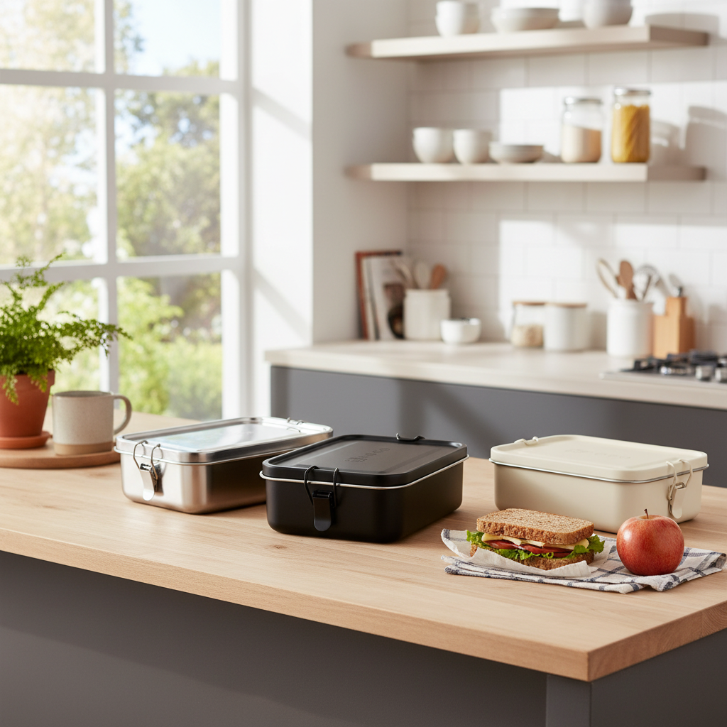 Stainless steel lunchbox engraved with logo